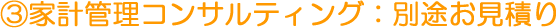 その他、「家計簿はあるけど、分析ができない。」「現在の収入と支出で、今度どれだけ貯金ができるの?」といったご相談に、分析資料や、年間収支シミュレーションを作成するなど、個別にお応えしております。
