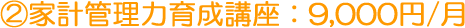 家計管理力育成講座では、家計簿作成代行をベースとして行いながら、1年間のカリキュラムの中で家計管理力を育成していく年間講座です。STEP4のライフマネージメントでは、将来的なライフプランの設計を行うなどより高度なサービスをご提供させていただきます。
